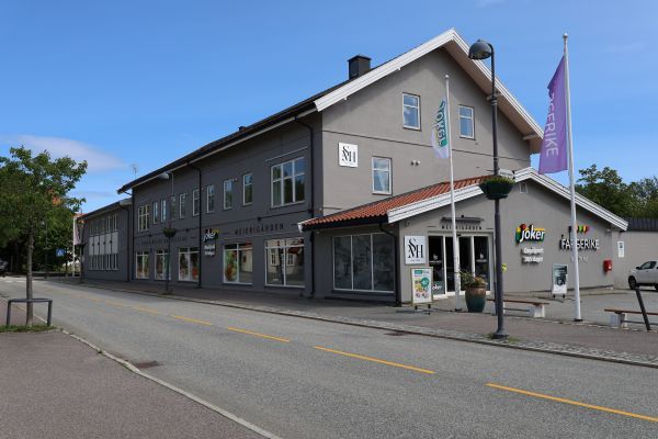 matbutikk og jernvarehandel i de gamle lokalene. Joker og Fargerike.